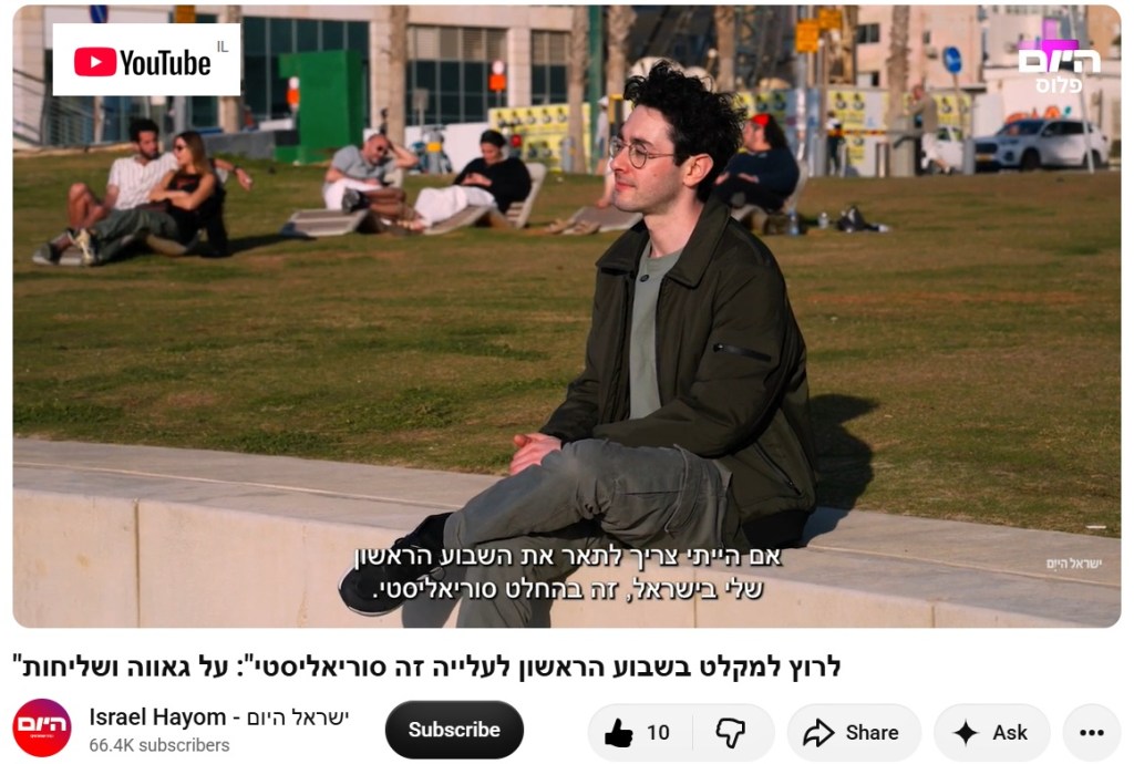 Josh featured in a national daily Israeli newspaper Israel Hayom in both video and written formats.
