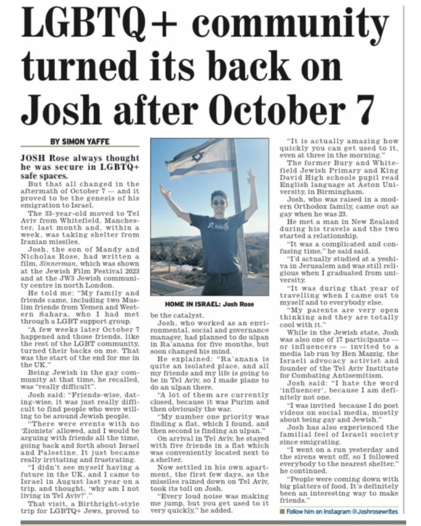 Josh featured in the national British newspaper the Jewish Telegraph.