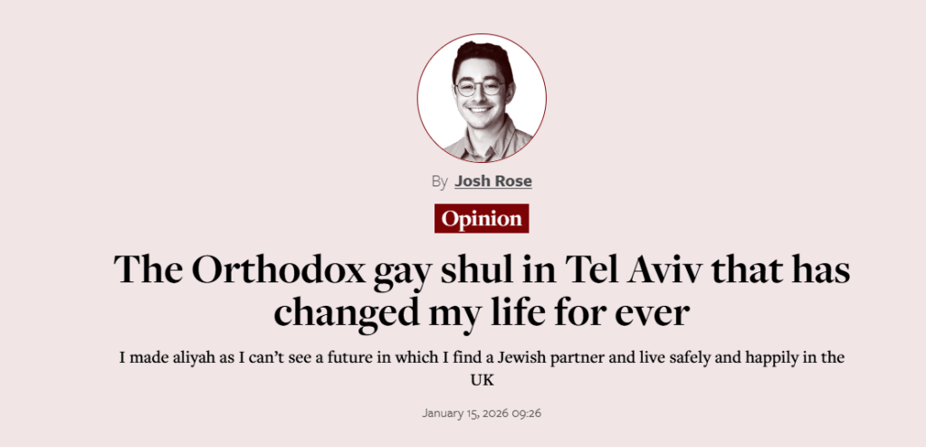 “I don’t know if it was being in an Orthodox shul full of gay people for the first time or because I knew that this moment would change the direction of my life. Either way, I prayed deeply that evening. I prayed following the same Orthodox service I went to as a child with my dad, the same service I go to now at my London Orthodox synagogue but this time, and for the first time, with a new and exciting future in my head.”